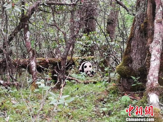 黃龍現(xiàn)野生大熊貓 工作人員首次近距離實地拍攝