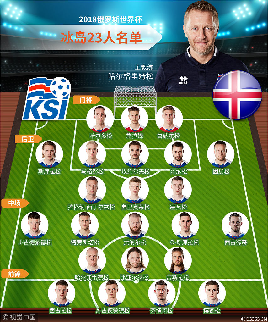男:是的,冰島也是世界杯歷史上人口最少的參賽國。有人開玩笑說,把冰島人口刨去女人、太老太小和干其他工作的男人,剛好只剩下冰島足球隊(duì)的23人。