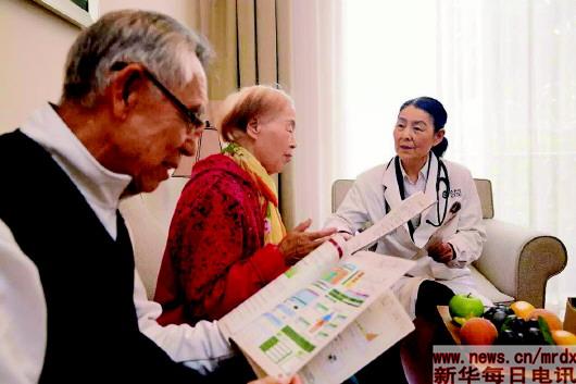 北京恭和苑內(nèi)的醫(yī)生為老人做定期檢查?! D片由受訪者提供