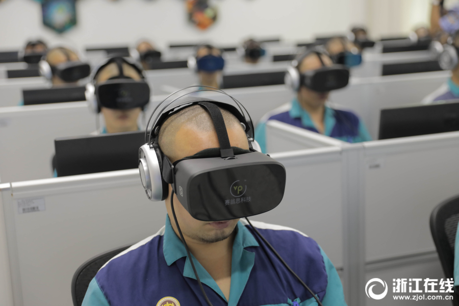 6月26日,浙江拱宸強制隔離戒毒所內(nèi),戒毒人員通過腦電技術(shù)和VR技術(shù)輔助戒毒。這些黑科技可以讓戒毒人員身臨其境地體會到吸毒的危害,從心理上減弱對毒品的依賴。(浙江在線記者 錢璐斌 徐文迪 攝)