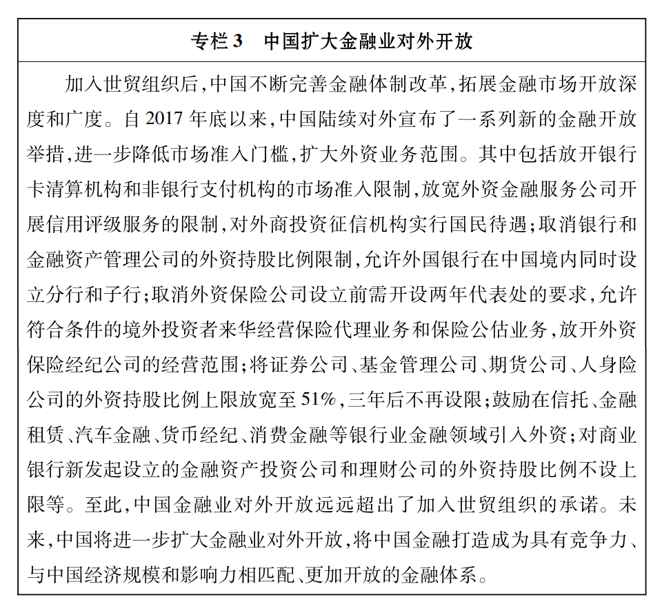 2001年中國加入世貿(mào)組織①以來,不斷完善社會主義市場經(jīng)濟體制,全面加強同多邊貿(mào)易規(guī)則的對接,切實履行貨物和服務開放承諾,強化知識產(chǎn)權(quán)保護,對外開放政策的穩(wěn)定性、透明度、可預見性顯著提高,為多邊貿(mào)易體制有效運轉(zhuǎn)作出了積極貢獻。