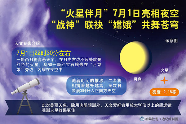 圖表:“火星伴月”7月1日亮相夜空 “戰(zhàn)神”聯(lián)袂“嫦娥”共舞蒼穹 新華社發(fā) 邊紀(jì)紅 制圖