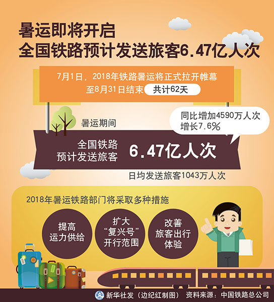 圖表:暑運即將開啟 全國鐵路預計發(fā)送旅客6.47億人次 新華社發(fā) 邊紀紅 制圖