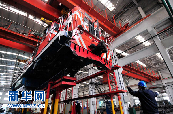 在中國鐵路西安局集團有限公司寶雞機車檢修廠聯(lián)合檢修庫內(nèi),職工們正緊鑼密鼓地進行機車落車組裝作業(yè)。