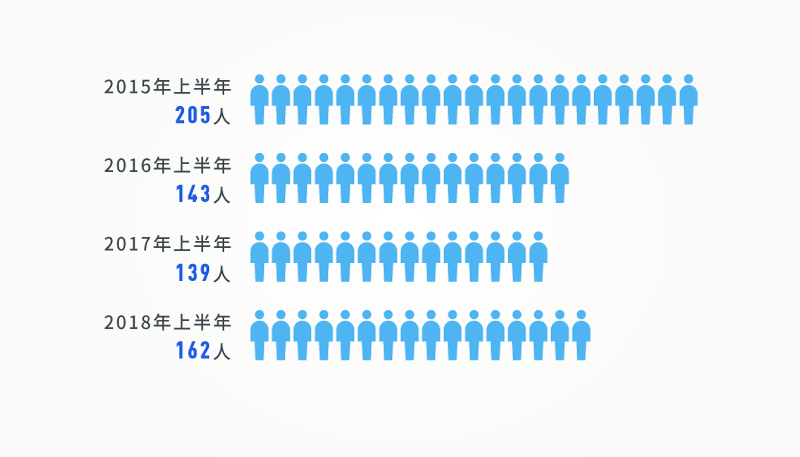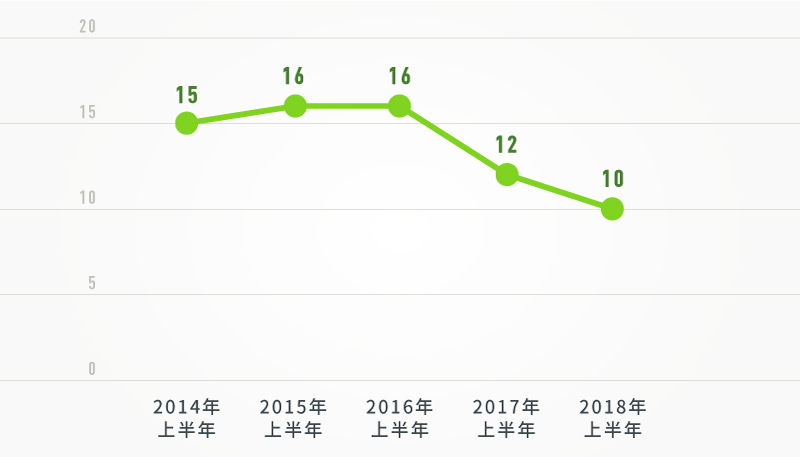 2014年以來(lái),上半年“打虎”數(shù)量走勢(shì)圖