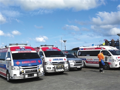 目前,普吉島查龍碼頭是搜救展開(kāi)作業(yè)的地方,設(shè)有營(yíng)救指揮部,內(nèi)部配有醫(yī)護(hù)人員、旅游警察以及軍方人員,外面還有5輛救護(hù)車待命。當(dāng)天普吉島天氣晴好,站在碼頭可看到大皇帝島,乘快艇二十分鐘便可抵達(dá)事發(fā)地附近。