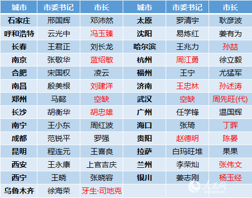 14個(gè)省會(huì)城市調(diào)整書記市長(zhǎng) 兩個(gè)“一把手”職務(wù)空缺待補(bǔ)