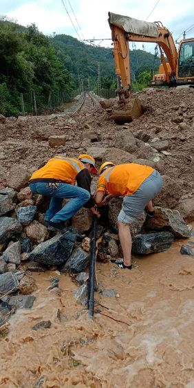 14日凌晨3點(diǎn),經(jīng)過將近3小時、8公里的徒步行走,劉金樂終于到達(dá)橫現(xiàn)河水害處所。他二話不說,拿起鐵鍬帶領(lǐng)大家清理排水溝,用礦泉水瓶、棉紗清理箱盒內(nèi)部積水。