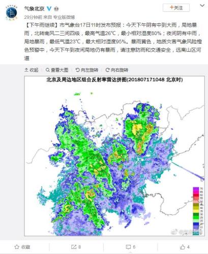 北京市氣象臺(tái)繼續(xù)發(fā)布暴雨黃色預(yù)警