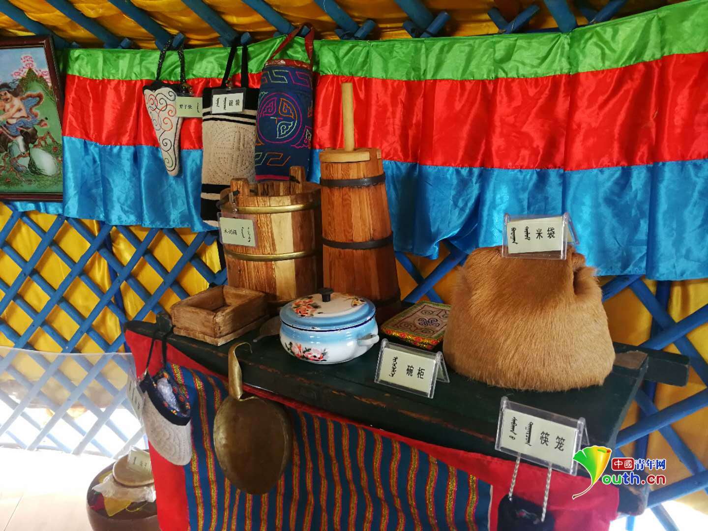 為了讓自家的旅游服務(wù)做的更好,蘇·呼格吉勒?qǐng)D專門設(shè)計(jì)了一個(gè)獨(dú)特的蒙古包“展廳”,里面全是牧民生產(chǎn)工具和生活用品:接羊羔的氈口袋、做酸奶的竹筒、弓箭、燭臺(tái)、皮口袋、搖籃等等。作為一個(gè)熱愛傳統(tǒng)民俗的牧人,蘇.呼格吉勒?qǐng)D把這些帶有蒙古族文化元素的“寶貝”一一收集起來(lái),讓每一位來(lái)到這里的游客都能親身體驗(yàn)到傳統(tǒng)游牧文化的魅力。