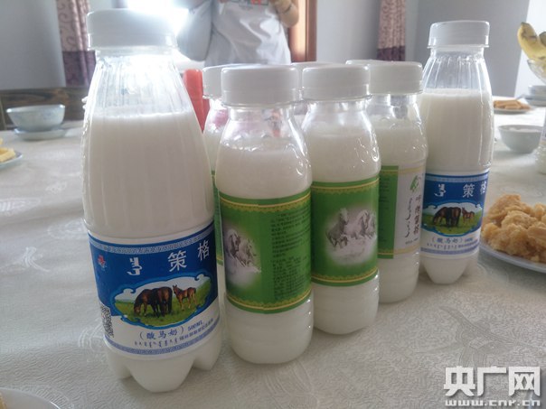 牧民家自制的酸馬奶