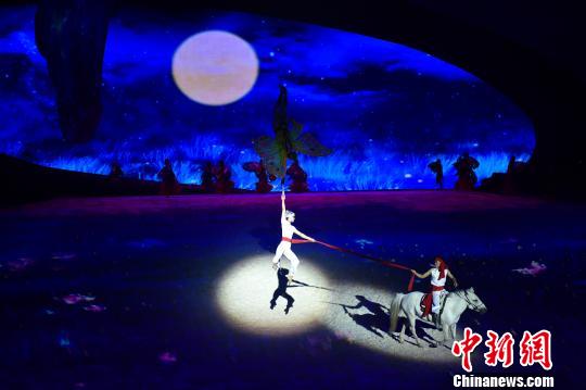 圖為劇目中融入雜技,表現(xiàn)男女主角的愛(ài)情故事。翟璐 攝