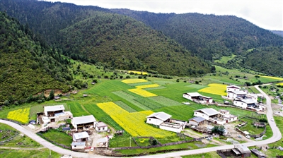 上圖為普達(dá)措國家公園洛茸村一景(7月18日無人機(jī)拍攝)。新華社記者 胡超 攝