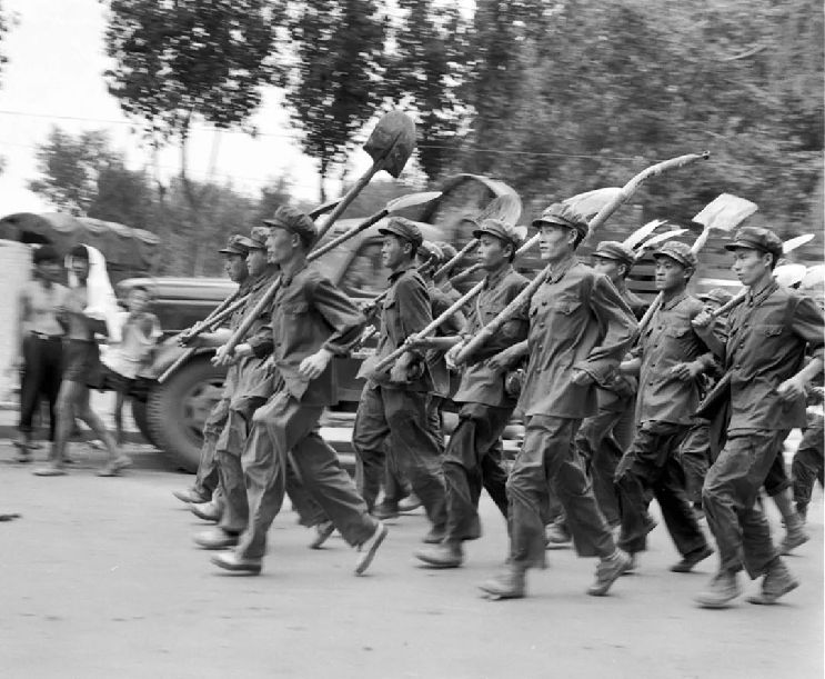 震后,大批人民解放軍日夜兼程奔赴災區(qū),搶救人民生命財產。(1976年8月1日發(fā))新華社記者 武清月 攝