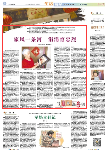 眼瞅著又快到建軍節(jié)了,昨個兒,我叫來大兒子敬朋,指著門楣上懸掛的“光榮之家”牌匾,對他說:“兒啊,把匾取下來,擦干凈,8月1日那天早上咱再掛上去,要讓早上的太陽,首先照亮它。因為——它就是咱家代代相傳、鮮血凝成的家風(fēng)啊!”(楊知雪/口述 謝學(xué)楓/整理)