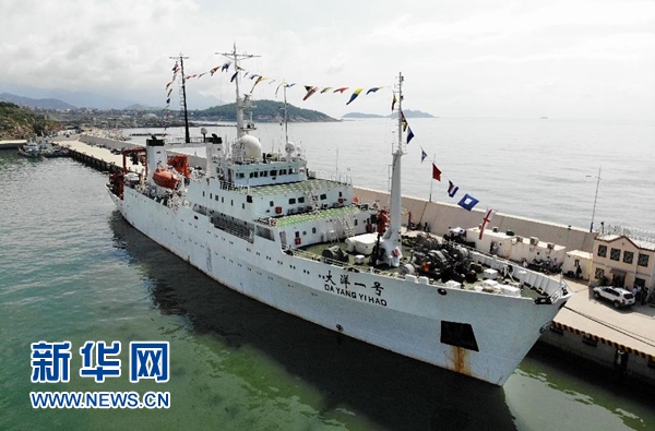 7月31日,在位于山東省青島市的國家海洋局北海分局科考基地碼頭,“大洋一號(hào)”科考船準(zhǔn)備起航。新華社記者 李紫恒 攝