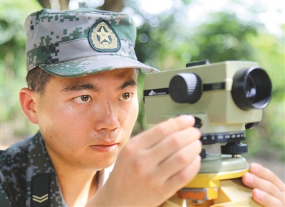 圖為何靜昆在訓(xùn)練使用測(cè)繪儀器。 高 攀攝
