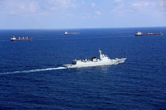 從戰(zhàn)艦起航的那一刻起,所有關(guān)于丈夫的消息都隨著母港內(nèi)尾流的消散,消失在無盡的大洋里。也從這一天起,我每天晚上7點(diǎn),都會準(zhǔn)時(shí)坐在電視機(jī)前,收看《新聞聯(lián)播》和《軍事報(bào)道》,期盼著首批護(hù)航的消息。直到現(xiàn)在,我依然清晰的記得這124天里與首批護(hù)航編隊(duì)相關(guān)的消息。
