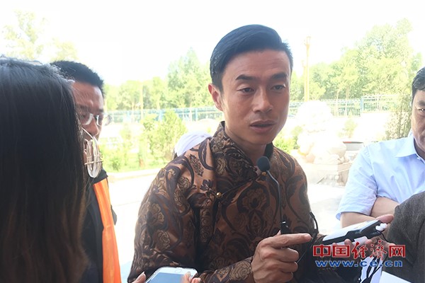 圖為熱貢龍樹畫院總經(jīng)理完德介紹畫院情況 經(jīng)濟(jì)日?qǐng)?bào)-中國經(jīng)濟(jì)網(wǎng)記者 秦爽/攝