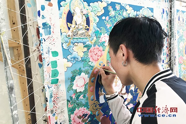 圖為正在畫院進(jìn)行唐卡創(chuàng)作的學(xué)徒 經(jīng)濟(jì)日?qǐng)?bào)-中國經(jīng)濟(jì)網(wǎng)記者 秦爽/攝