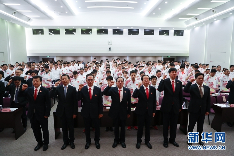 8月6日,代表團成員在大會上宣誓。新華社記者 曹燦 攝