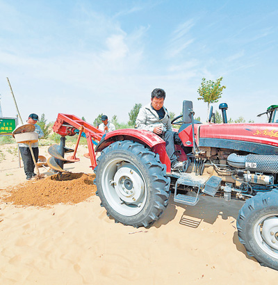 在庫(kù)布其堅(jiān)持治沙30年的億利集團(tuán)也按照全市總體規(guī)劃,提出了系統(tǒng)的治沙規(guī)劃。集團(tuán)董事長(zhǎng)王文彪介紹:“我們采用機(jī)械化與人工種植相結(jié)合的措施,加上自然修復(fù),使庫(kù)布其沙漠形成綠洲,增加生物多樣性,逐步形成新的完整生態(tài)系統(tǒng)。”