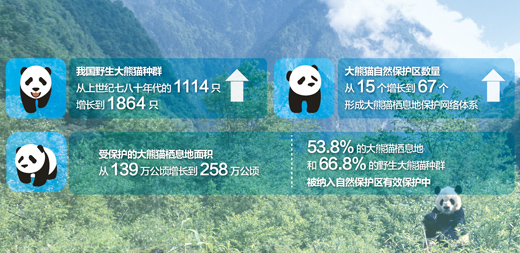 大熊貓自然保護(hù)區(qū)已增至67個(gè)