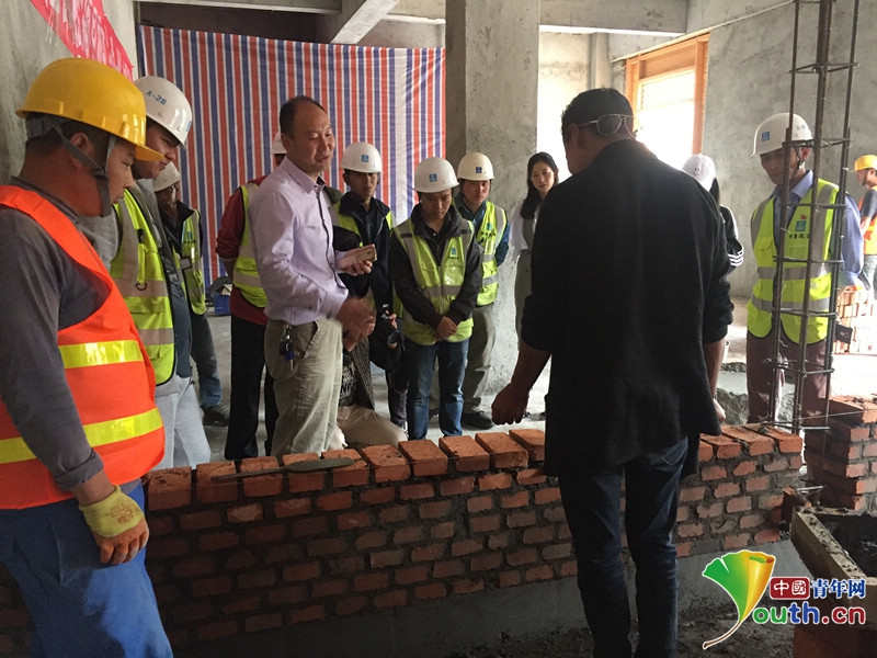 工程人員為當(dāng)?shù)厥S鄤趧?dòng)力進(jìn)行砂漿攪拌、焊接免費(fèi)技能培訓(xùn)。中建二局供圖
