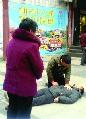 南昌大學第四附屬醫(yī)院董財榮醫(yī)生跪地為一位突發(fā)癲癇的六旬老人進行心肺復蘇緊急搶救,最終老人脫離危險。