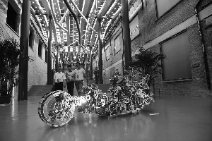 老舊廠房保護(hù)利用與城市文化主題展上展出的藝術(shù)品。北京晨報(bào)記者 王穎/攝