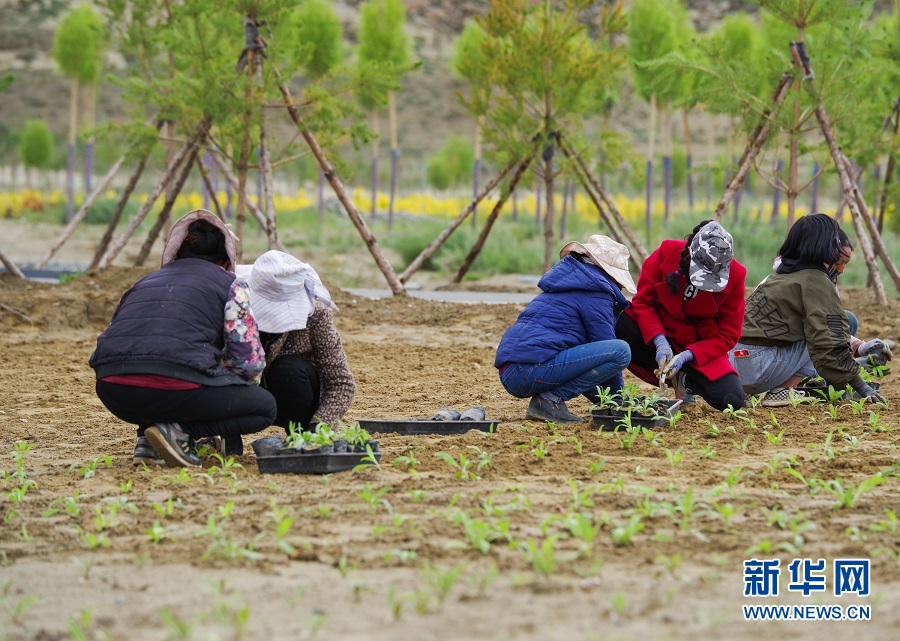 西藏山南市扎囊縣阿扎鄉(xiāng)群眾在藏草萬畝苗圃基地內(nèi)栽培幼苗(7月23日攝)。 新華社記者劉東君攝