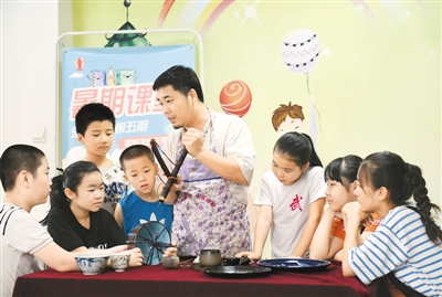 在石家莊市橋西區(qū)東華街道,李軍航在給孩子們上鋦瓷非遺課。陳其保攝(新華社發(fā))