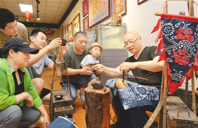 在遼寧省錦州市群眾藝術(shù)館非物質(zhì)文化遺產(chǎn)保護(hù)中心,鋦瓷傳承人姜波(右一)在為人們表演鋦瓷。李鐵成攝(人民視覺)