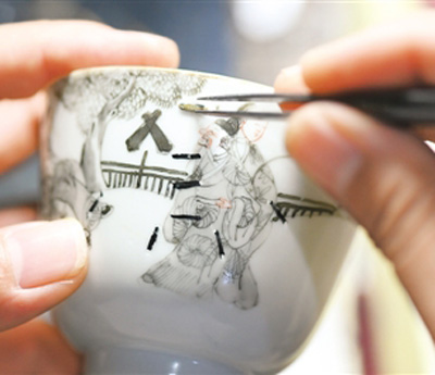隨著歷史的變遷,這一原本走街串巷服務(wù)于普羅大眾的行當(dāng)已經(jīng)十分鮮見,鋦瓷技藝也瀕臨失傳。幸運的是,在中國,還有一批堅守傳承這項傳統(tǒng)技藝的鋦瓷人,他們用工匠之心,讓一件件殘破的瓷器“破鏡重圓”,同時也使更多的人了解了這項傳統(tǒng)技藝,了解了博大精深的中國瓷文化。