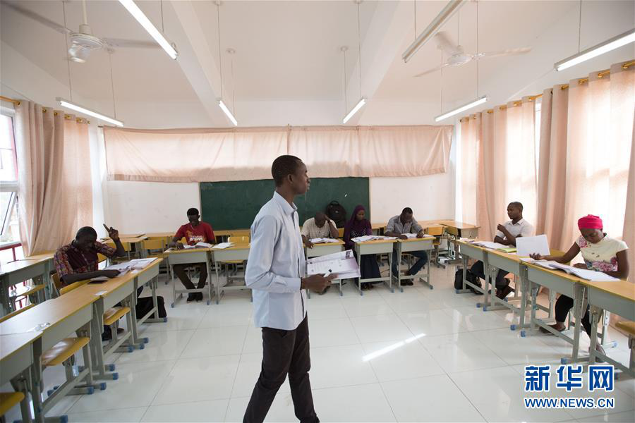 2018年7月18日,庫(kù)馬克·巴胡姆(中文名字巴虹)(前)在塞內(nèi)加爾達(dá)喀爾大學(xué)孔子學(xué)院教中文課。目前,達(dá)喀爾大學(xué)孔子學(xué)院已有3名在崗本土中文教師,他們以生動(dòng)、易懂的方式在塞內(nèi)加爾傳播中國(guó)文化,講述中國(guó)故事。 新華社記者呂帥攝