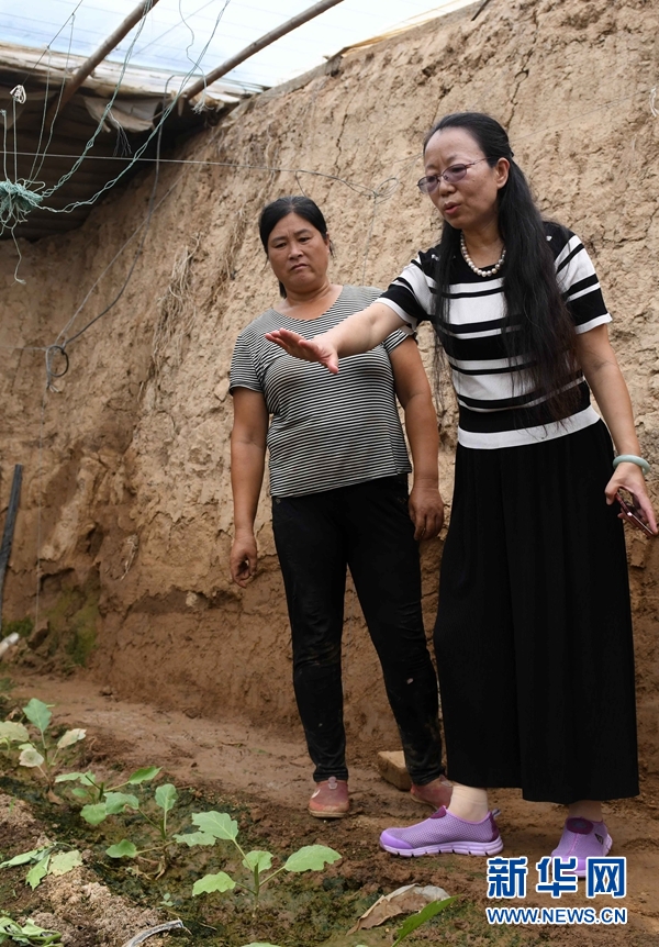 8月30日,中國(guó)農(nóng)業(yè)大學(xué)教授高紅麗(右)在紀(jì)臺(tái)鎮(zhèn)前老莊村指導(dǎo)種植戶(hù)趙秀蓮做好田間管理。 新華社記者 朱崢 攝