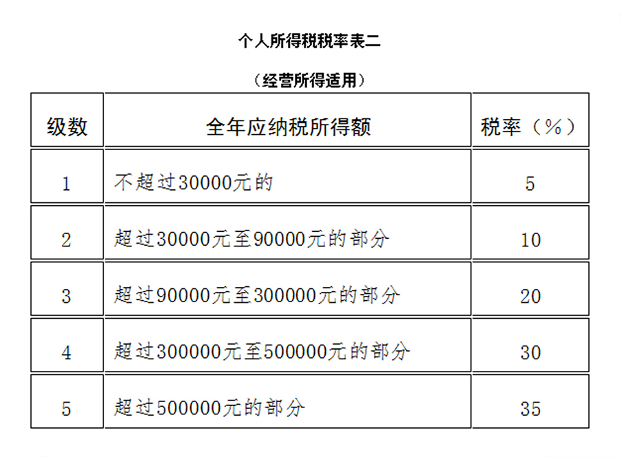 ?。ǘ┙?jīng)營(yíng)所得,適用百分之五至百分之三十五的超額累進(jìn)稅率(稅率表附后);