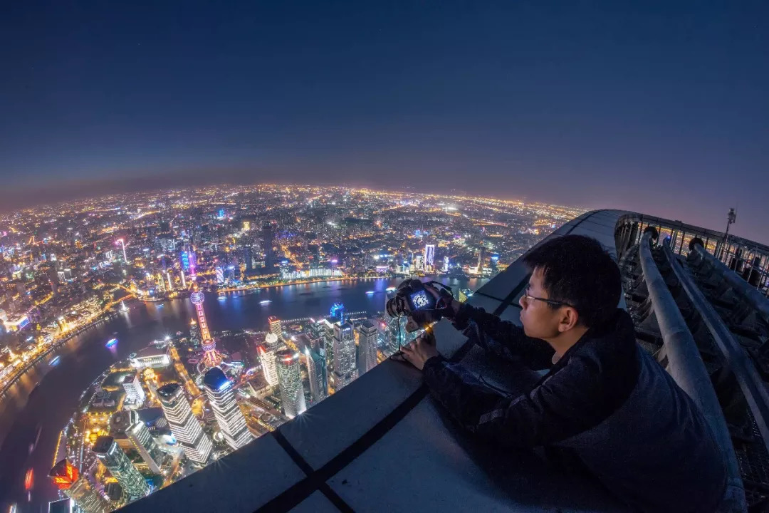 觀察君說:扛著標(biāo)志性的大背包,凌晨守著魔都從沉睡中醒來,傍晚又等待夕陽的降臨,他在建筑中穿梭,與時間賽跑。為了記錄上海,“爬樓黨”攝影師余儒文,曾半年內(nèi)7次登上位于浦東陸家嘴的上海中心,在632米高的視角下,拍下了連綿崛起的魔幻高樓、光影交錯的現(xiàn)代建筑、劇烈起伏的天際線,而這些,正匯成了浦東高速發(fā)展的縮影。