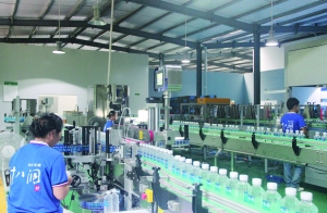 一棟碧綠色的廠房首先映入記者眼簾。走進(jìn)廠房,十幾名工人正在全自動化的生產(chǎn)線前忙碌著。來自十八洞村的山泉水經(jīng)過水管輸送到這兒,經(jīng)過十幾道設(shè)備,進(jìn)行專業(yè)沉淀、過濾、消毒、殺菌等處理后,一瓶瓶帶著山里冰涼氣息的礦泉水就在這里下線。