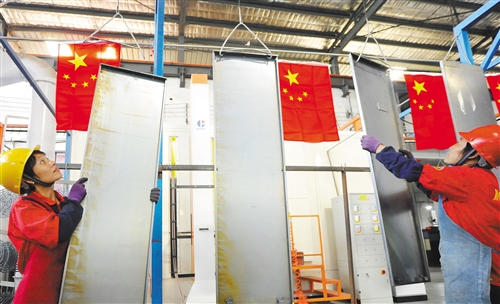 圖② 9月30日,江西省新余市渝水區(qū)珠珊鎮(zhèn)板橋工業(yè)園,江西劍安消防設備有限公司的生產(chǎn)車間里,員工忙生產(chǎn),為國慶獻禮。 鐘婷 攝