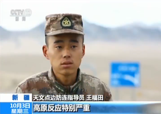 天文點邊防連指導員 王福田:第一次上山高原反應特別嚴重,車剛到連隊就吐了,后面的幾天意識不是很清醒,連隊軍醫(yī)診斷出我腦水腫,緊急下送到醫(yī)療站,在那里治療,康復之后又返回來到這里。我們的新兵上來反應特別嚴重的每年都有,但是我們主動要求要放棄、要下去的,基本沒有。