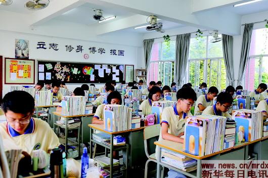 國(guó)華紀(jì)念中學(xué)學(xué)生在晨讀。本報(bào)記者謝銳佳攝