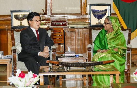 孟加拉國(guó)總理哈西娜10月25日在達(dá)卡會(huì)見(jiàn)國(guó)務(wù)委員、公安部部長(zhǎng)趙克志。