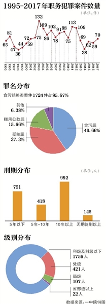昨天上午,北京一中院發(fā)布《1995年-2018年職務(wù)犯罪白皮書》(以下簡稱白皮書)。作為承擔(dān)了北京近四成的職務(wù)犯罪審判任務(wù)的法院,23年來,一中院通過審理的1800余件職務(wù)犯罪案件,總結(jié)出了該類案件的主要特征和發(fā)展趨勢。近年來,職務(wù)犯罪中“小官”犯罪占比較高、犯罪行為時(shí)間跨度平均為7年,“初犯”低齡化職務(wù)犯罪特征初顯等。