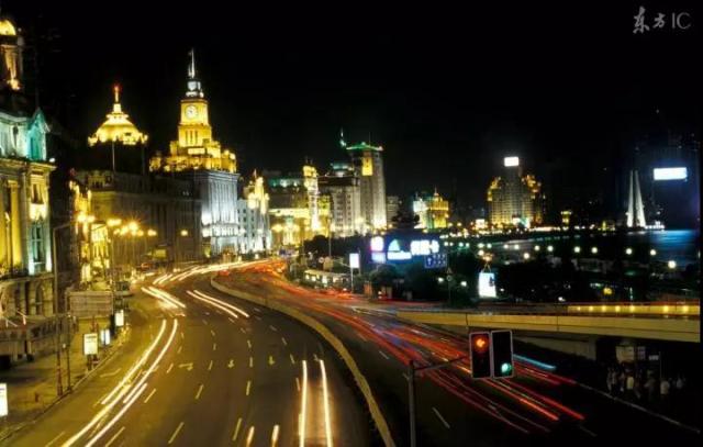 燈光璀璨,車燈組成的車流駛向東方明珠。