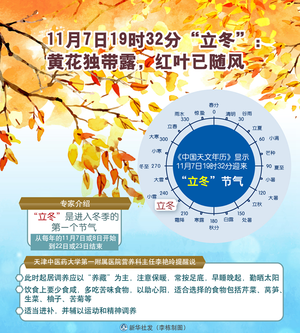 11月7日19時32分“立冬”:黃花獨帶露,紅葉已隨風(fēng) 新華社發(fā) 李棟 制圖