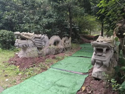 11月5日上午,記者在瑞豐公館小區(qū)看到,兩條巨龍還安放在8號樓下面的過道邊,石像立在綠地的一棵樹下。一位綠化工人介紹,龍還沒搬進來的時候,范順清在過道兩邊砌了一尺高的磚作為基座,后來不知被誰清理掉了,但后來兩條龍還是搬運了進來,直接放在土里。