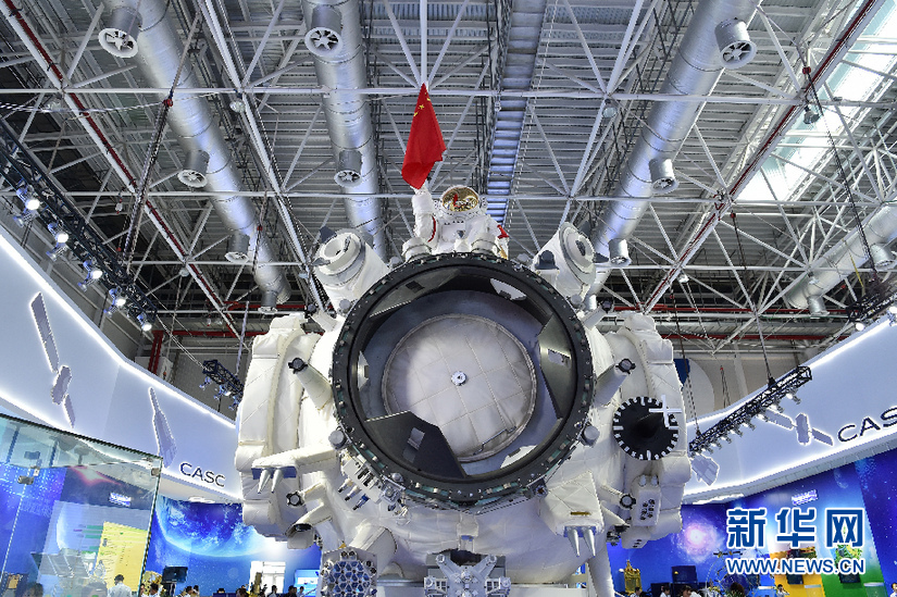 ??? 這是展出的空間站核心艙實(shí)物(工藝驗(yàn)證艙)(11月5日攝)。 11月6日,在廣東珠海舉辦的第十二屆中國國際航空航天博覽會上,中國空間站“天和”號核心艙揭開神秘面紗,公開亮相。 新華社記者梁旭攝