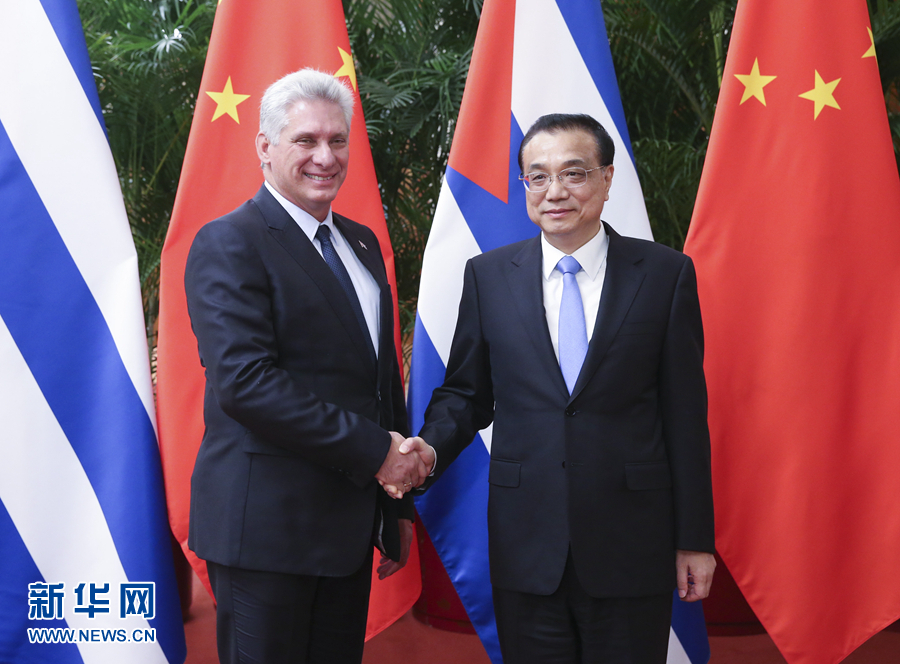 11月8日,國務(wù)院總理李克強在北京人民大會堂會見來華進行國事訪問的古巴國務(wù)委員會主席兼部長會議主席迪亞斯-卡內(nèi)爾。 新華社記者姚大偉攝