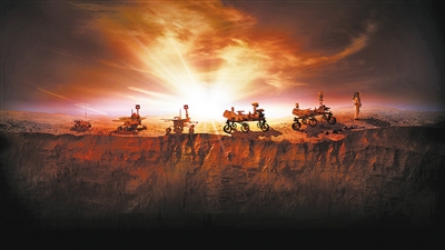 近期火星探測(cè)的科學(xué)目標(biāo)以尋找火星上現(xiàn)在或曾經(jīng)存在生命的證據(jù)為主。通過(guò)以往的研究,科學(xué)家們已經(jīng)認(rèn)識(shí)到,如果火星上的某片區(qū)域曾經(jīng)是海底、湖盆、河床或者河流沖積形成的三角洲,那么這一區(qū)域很可能曾經(jīng)存在能夠孕育生命的環(huán)境。圍繞火星飛行的探測(cè)器除了能夠發(fā)回最直觀的火星表面照片外,還能利用搭載的多波段光譜儀和測(cè)高儀等儀器,帶來(lái)火星全球的表面地形地貌、巖石成分等更豐富的信息??茖W(xué)家們可以根據(jù)每艘著陸探測(cè)器的具體科學(xué)目標(biāo),利用火星的全球數(shù)據(jù)選取一些潛在可用的著陸點(diǎn)。之后,通過(guò)不斷的加密探測(cè)和比較討論,縮小著陸點(diǎn)候選范圍,并確定實(shí)際使用的著陸點(diǎn)。